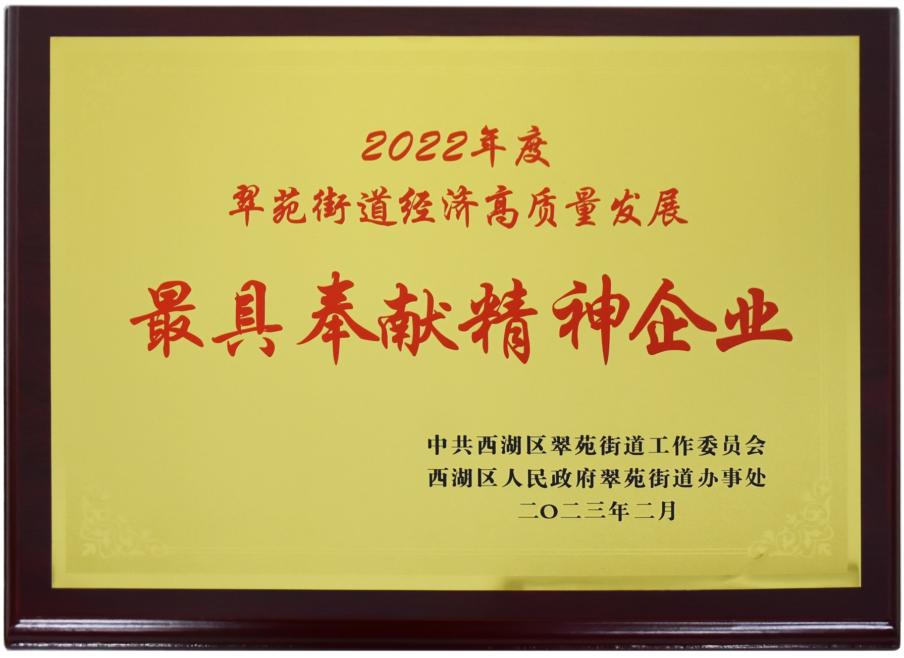 2022年翠苑街道經(jīng)濟高質(zhì)量發(fā)展-最具奉獻精神企業(yè)