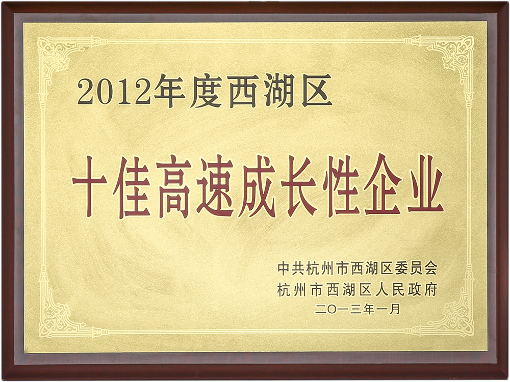 2012年度西湖區(qū)十佳高速成長性企業(yè)