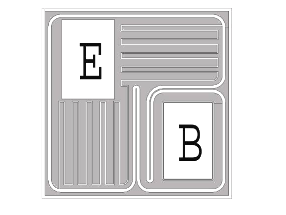 芯片背面為集電極,基極與發(fā)射極的鍵合點(diǎn)位置見(jiàn)右圖