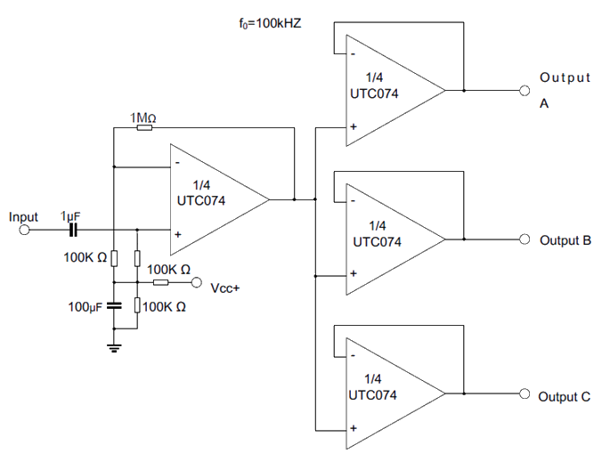 UTC074是一種高速的J-FET輸入四極運(yùn)算放大器,在一個單片集成電路中很好的匹配了高壓J-FET和雙極晶體管。
